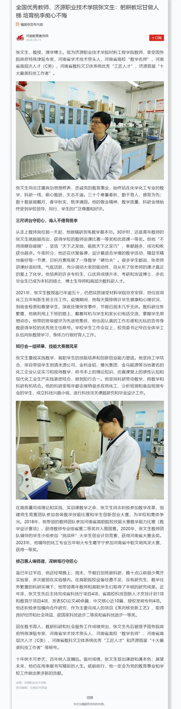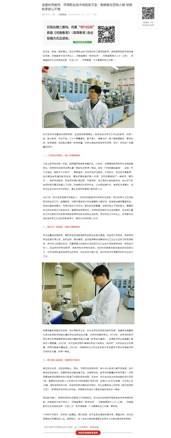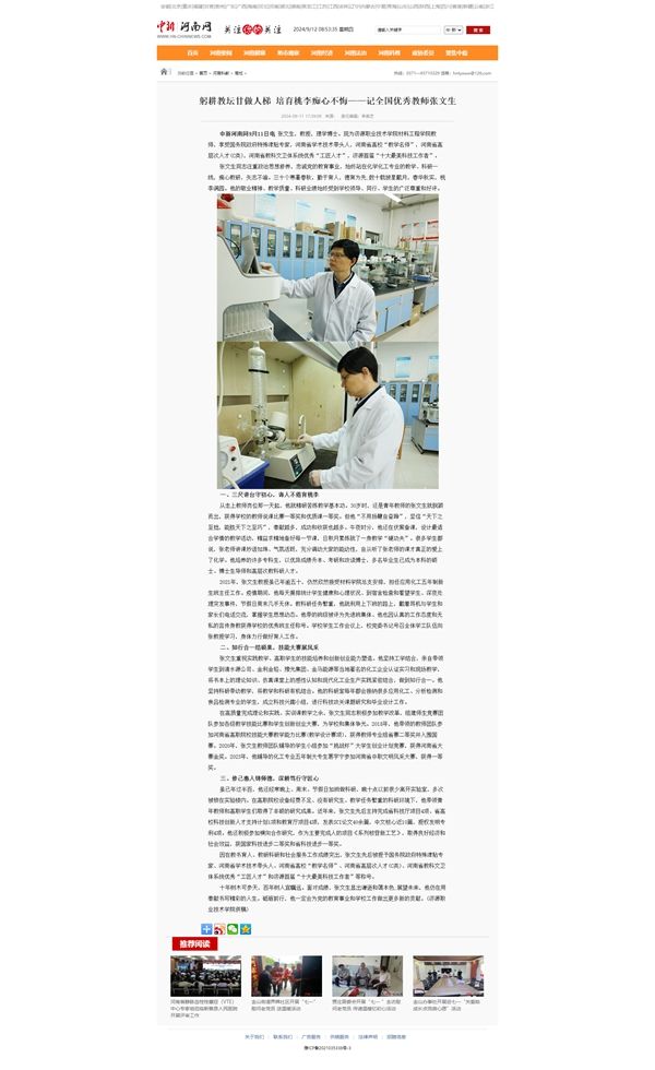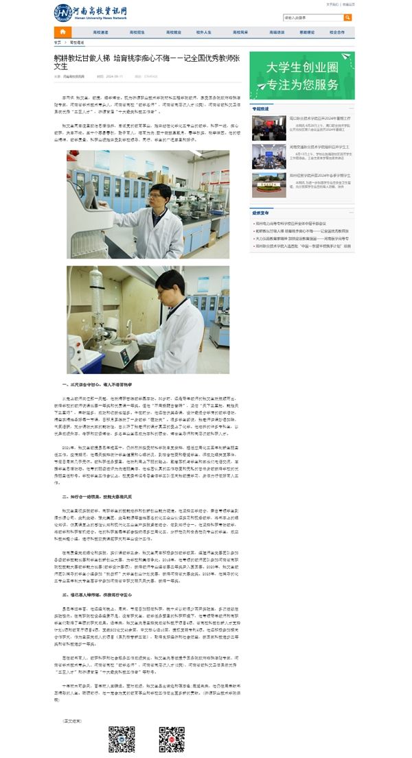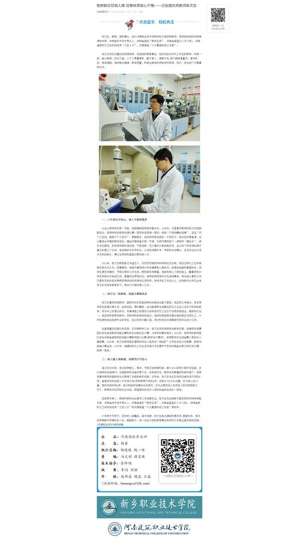 转自9月11日学习强国、河南高教、河南高校行、顶端新闻、河南高校资讯网、中华高校网、中新网、中原经济网、新豫网:躬耕教坛甘做人梯 培育桃李痴心不悔——记全国优秀教师张文生