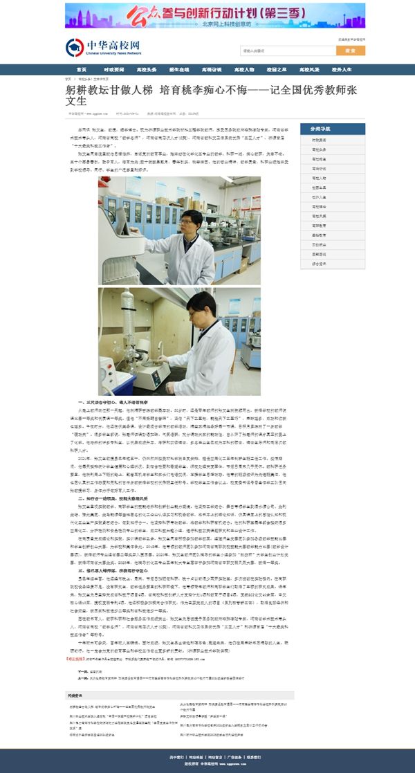 躬耕教坛甘做人梯 培育桃李痴心不悔——记全国优秀教师张文生 - 中华高校网-高校资讯在线