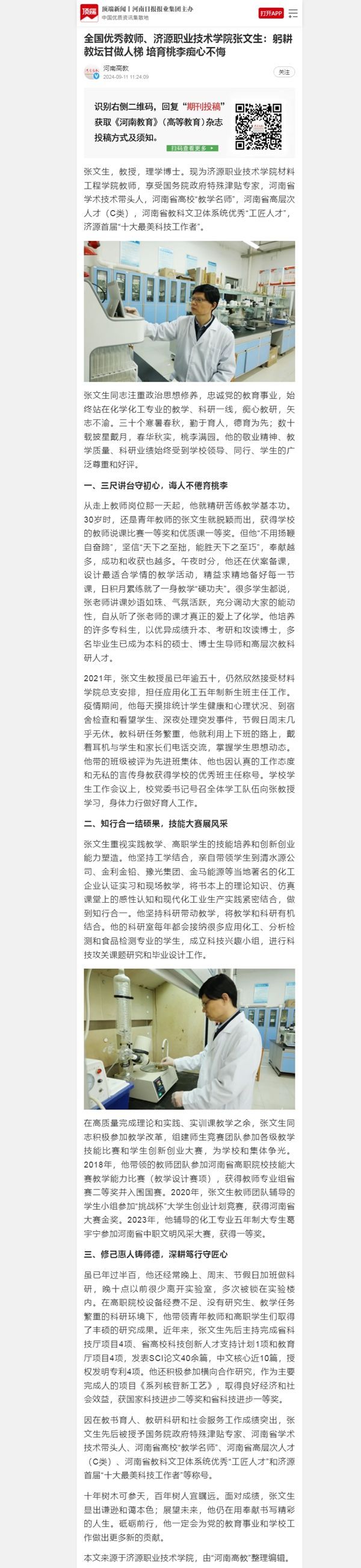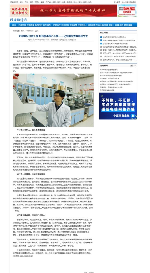 学习强国:全国优秀教师、济源职业技术学院张文生:躬耕教坛甘做人梯 培育桃李痴心不悔