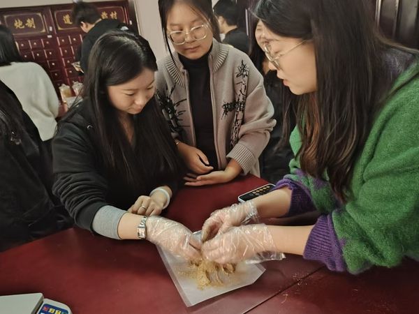 活动现场,气氛热烈而庄重。在成芸老师的悉心指导下,社团成员们首先深入了解了合香珠这一古老非遗技艺的历史背景、文化内涵及精湛的制作工艺。从香料的选择、配比,到揉制、成型,每一步都凝聚着匠人的智慧与心血,让同学们深刻体会到了传统工艺的魅力。